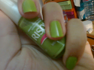 aqui esta um que ha muito queria comprar mas nunca encontrava, mal o vi nem pensei duas vezes, comprei logo, eh o menta da Risque. funciona num verde lindo, nao muito vivo mas tambem nao eh morto. eh lindo. uma boa opção para o verão.